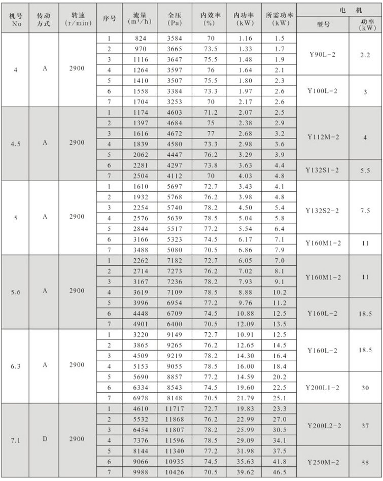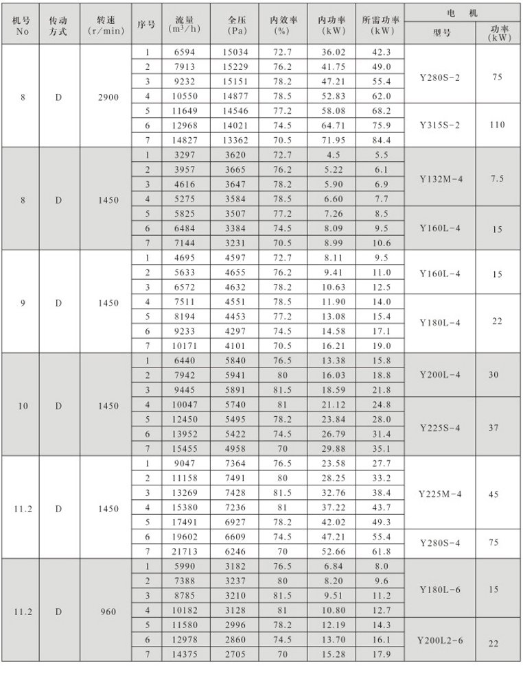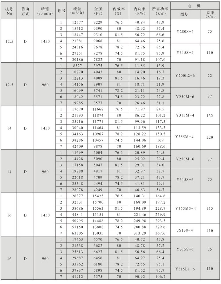 9-19系列高压离心通风机性能参数与选用配置表(2)