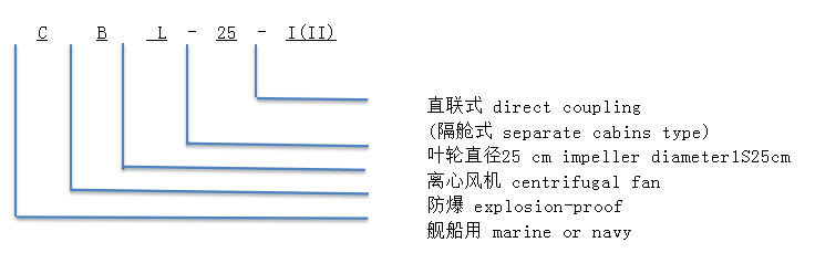 CBL系列舰船用防爆离心通风机(以下简称“防爆通风机”)是按照GB1799-2008《舰船心通风机》、GB3836.12000《煤炸性环境用防爆电气设备》中的1通用要求、GB3836.2-2000《爆炸性环境用防爆隔爆型电气设备“d”的有关规定和中国船舶检验局现行《钢质海船入级和建造规范》的有关规定设计制造的