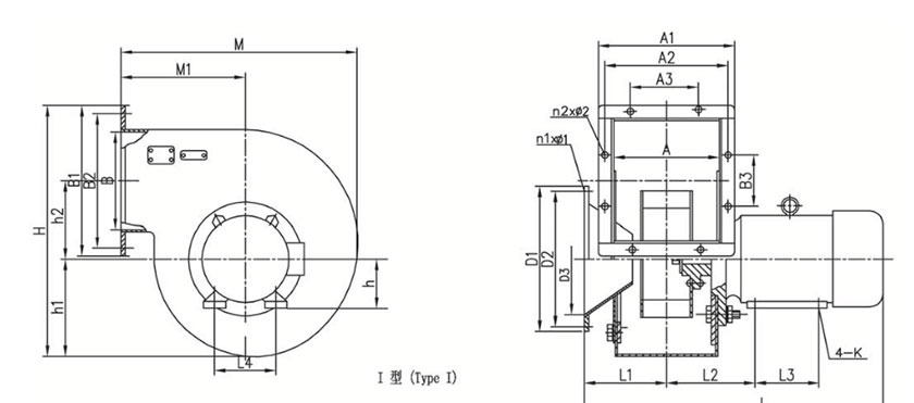 I型(直联式)防爆通风机制成防爆电动机直接传动式结构,叶轮直接装在电动机轴上,机壳固定在防爆电动机法兰上。