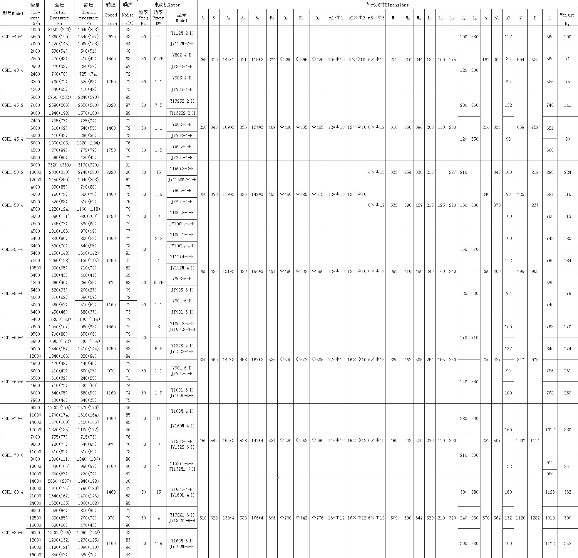 通风机叶轮由铝合金制成,叶片为机翼型,并经过严格动平衡校正,具有优良的空气性能。机壳、进风口等由普通钢板制成,采用镀锌等防腐措施,机号≥40时,通风机加有机架(40以下无机架)。