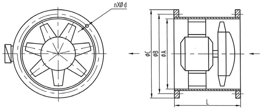 风机机壳采用钢板焊接结构,表面采取防腐处理,机壳进、出口两端均有,以便与进、出风管道有螺栓联接。机壳可根据需要制成整体式或轴向开启式结构。开启式机壳是将叶轮和电动机装在可开启的半机壳上,故便于现场检修和更换零部件。
